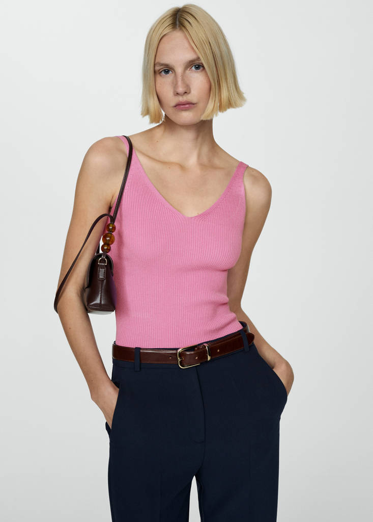 Fine knit fabric. Straight design. V-neck. Sleeveless. Thin straps. Open back. Available Plus. Fitted design. Long design. Cable knit fabric. V-neckline. V-neckline in the back. No Fastening. Office looks