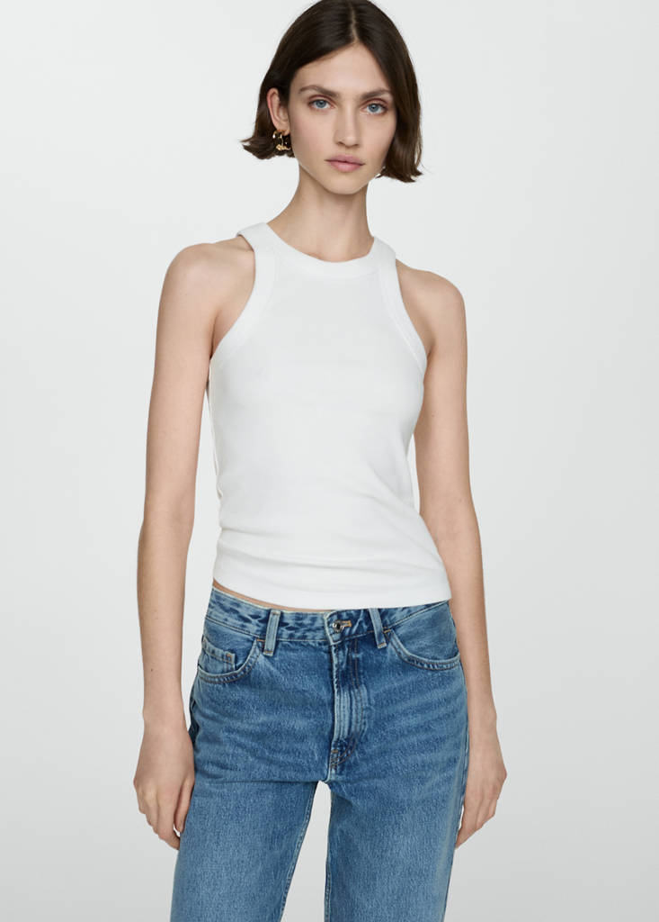 Cotton blend fabric. Ribbed knit. Straight design. Round neck. Sleeveless. Available Plus. Fitted design. Halter neck. No Fastening. Festival Season. Standard design. Slim fit. Wide straps. Lightweight fabric.