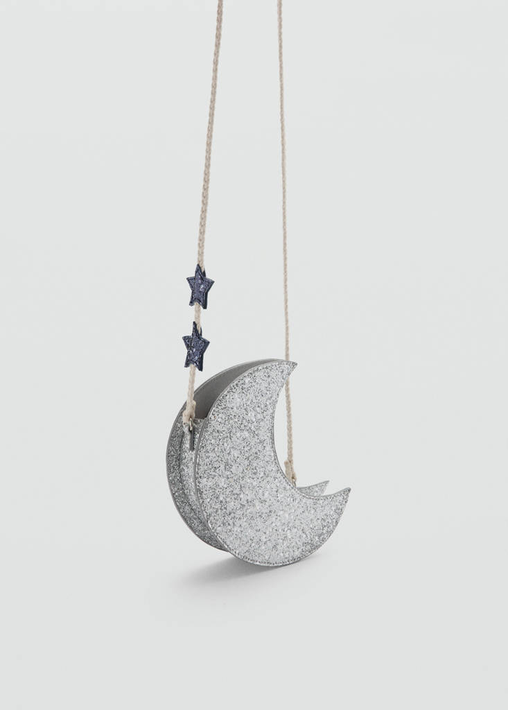 Måndesign. Glitter detalj. Stjärndekoration. Långt handtag. Tryckknapp stängning