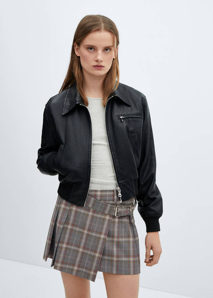 Kort design. Asymmetrisk design. Design med plankveck. Tweed tryck. Bältesöglor. Spänne stängning. Justerbart spänne