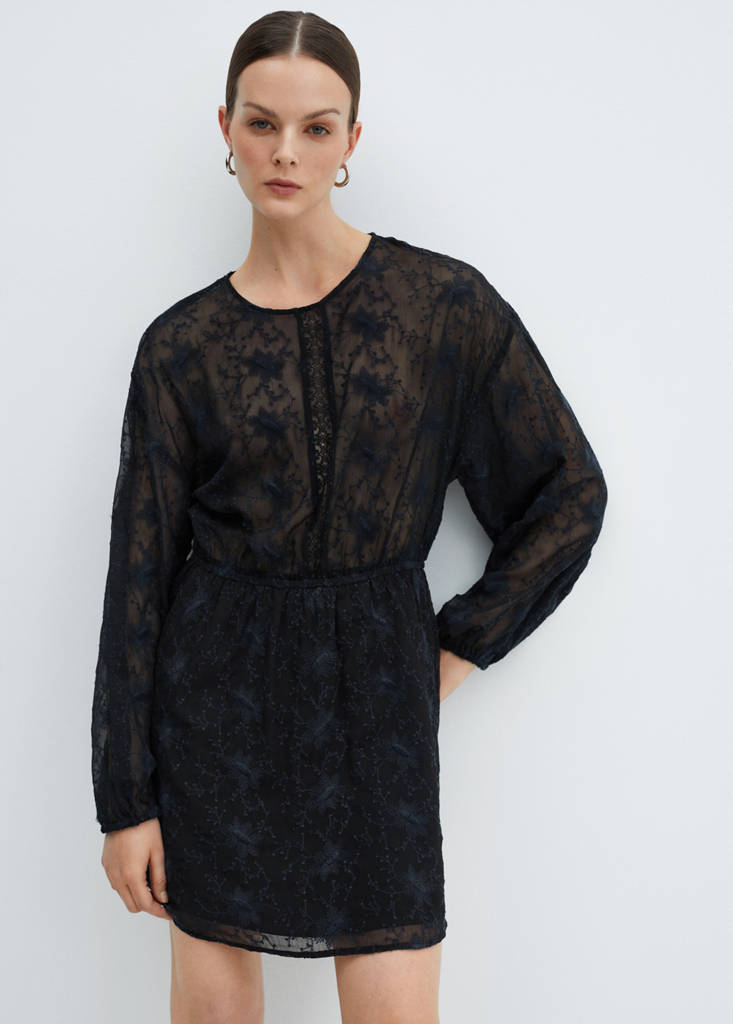 Broderad klänning ballongärm