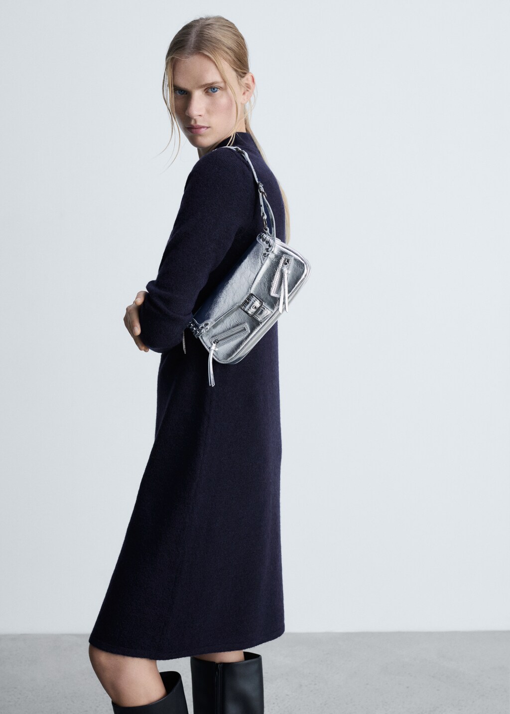 Mellanpunkt. Mididesign. Rak design. Perkins-krage. Lång ärm.