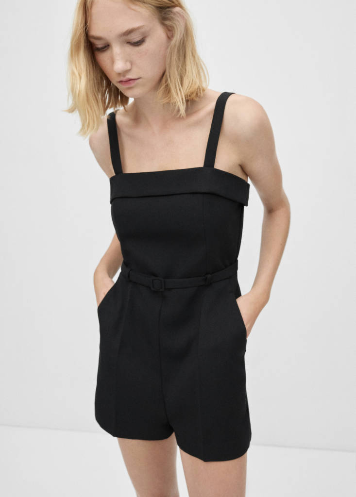 Breda axelband. Kort design. Rak design. Djup urringning. Bältesöglor. Dekorativt skärp. Stängning med dold dragkedja på baksidan. Selection-kollektion. Ylleblandat tyg. Två sidofickor. Ärmlös
