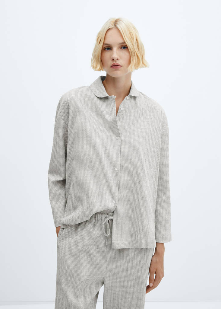 Ginghamrutig bomullspyjamasPrishistorikUrsprungligt pris överstruket [749 kr ]749 krGällande pris [519 kr ]519 kr−31 %Välj en färgGråModellen bär storlek S och är 179cm lång.Välj din storlekSEj tillgänglig. Jag vill ha den!MEj tillgänglig. Jag vill ha den!LEj tillgänglig. Jag vill ha den!MåttMeddela migBomullsblandningstyg. Lång design. Rak design. Vichy rutor tryck. Skjortkrage. Långärmad. Resårlinning med rosettstängning. Set om två. FramknäppningDetaljer, material och skötselTillgänglighet i butik
