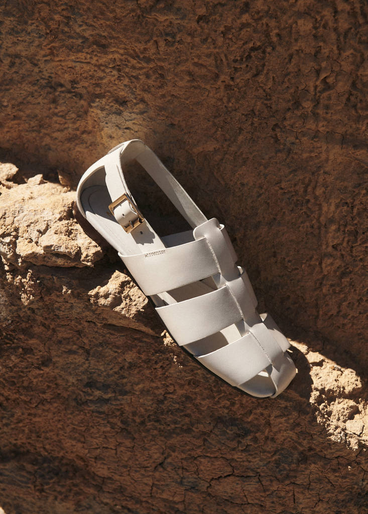 100 % läder av nötkreatur. Rund tå. Flat. Spänne stängning