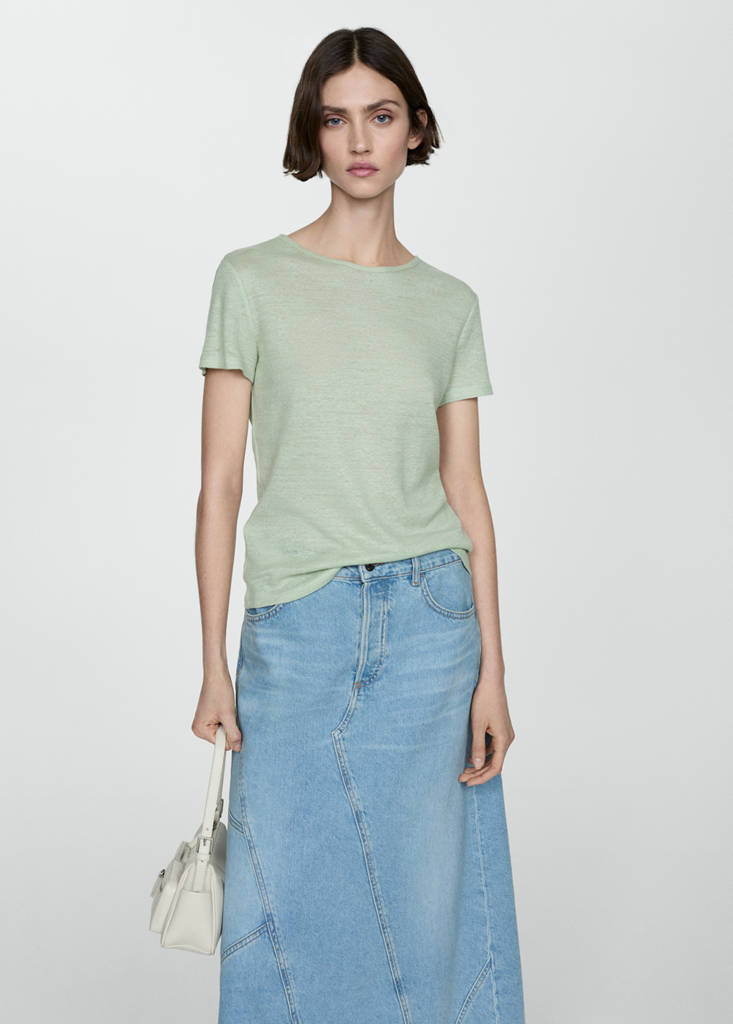 100% Linne. Slim fit. Rak design. Rund halsringning. Kort ärm. Utan stängning