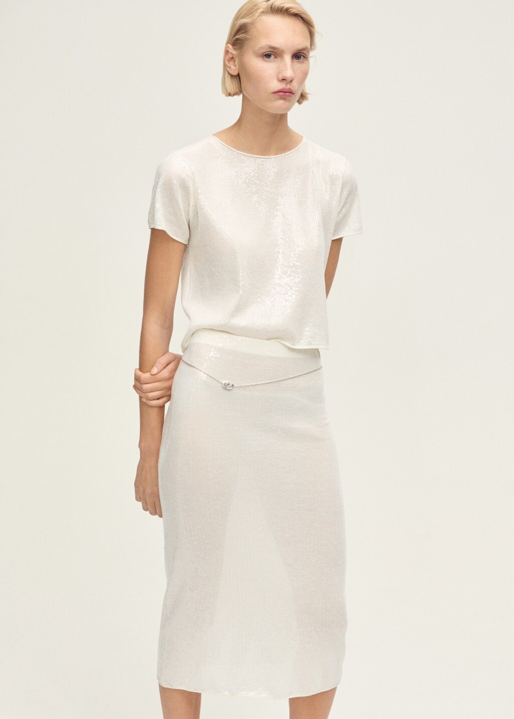 Finstickad. Tyg med paljetter. Rak design. Rund halsringning. Kort ärm. Utan stängning. Total look. Fest-, ceremoni- och kommunionskollektion. Selection-kollektion.