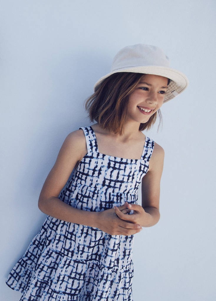 100% bomull. Rak design. Kort design. Tie-dye mönster. Volangdetalj. Fyrkantig halsringning. Axelband. Ärmlös. Utan stängning. Innerfoder. Sommarläger