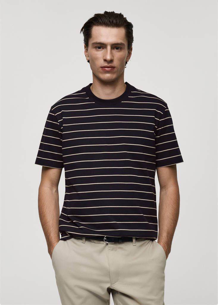 Randig t-shirt 100 % bomullPrishistorikUrsprungligt pris överstruket [349 kr ]349 krAndra priset överstruket [269 kr ]269 krGällande pris [239 kr ]239 kr−32 %Välj en färgNavy blåModellen bär storlek M och är 188cm lång.Välj din storlekXSSSista exemplaren!MEj tillgänglig. Jag vill ha den!LEj tillgänglig. Jag vill ha den!XLSista exemplaren!XXLSista exemplaren!MåttLägg tillRegular fit. Randigt design. 100% Bomull. Ribbad finishDetaljer, material och skötselTillgänglighet i butik