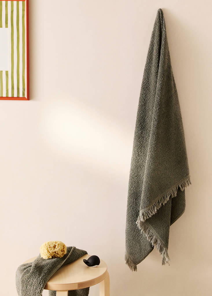 Storlek: 70x140 cm. 100% Bomull. Vikt: 500gr/m2. Slitet effekt. Hög kvalitet: vegetabiliska färgämnen. Upplev maximal mjukhet i dina badtextilier tillsammans med en hög absorptionsförmåga. Finns i olika färger. Kombinera med fler produkter från kollektionen