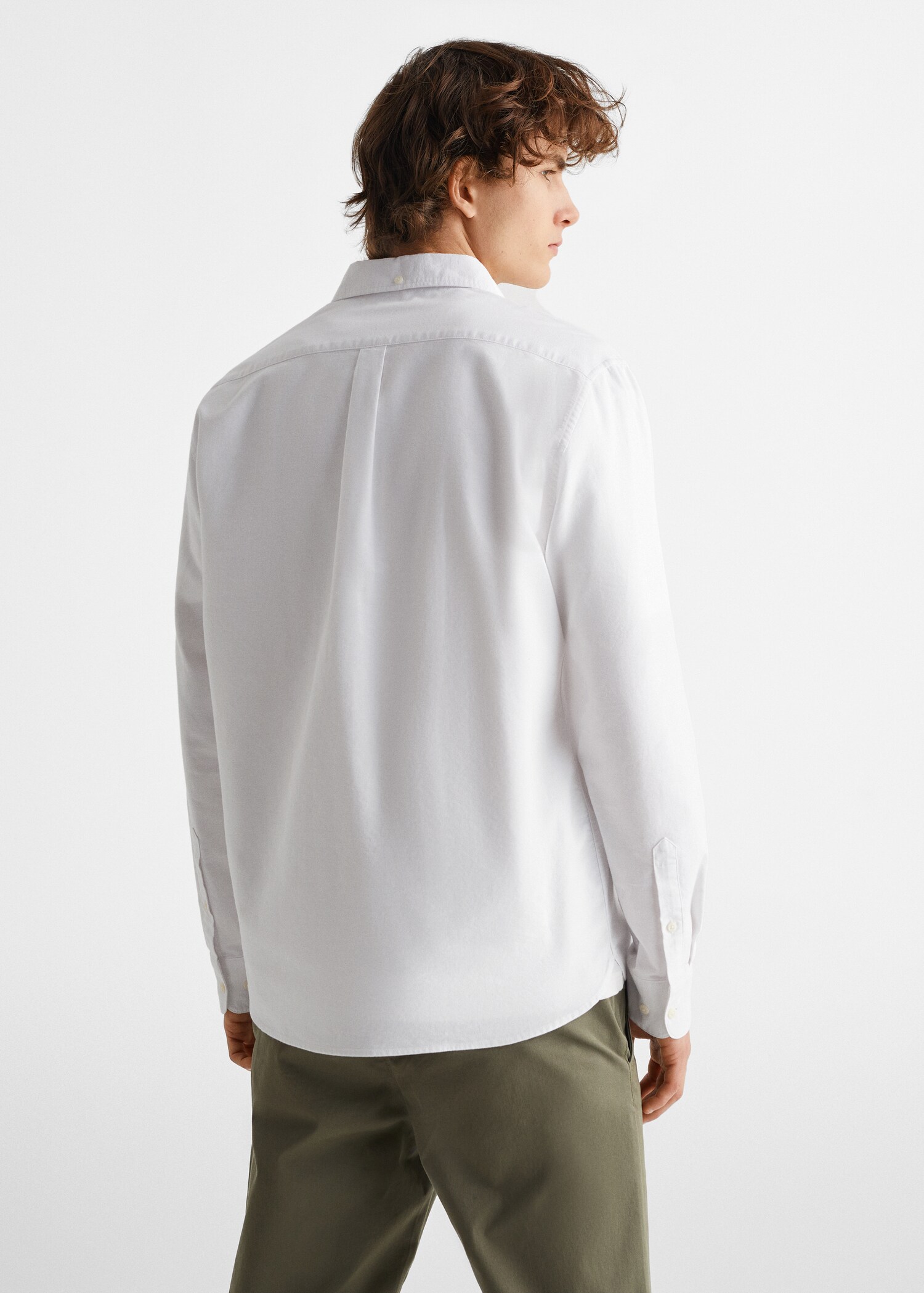 Unisex. 100% bomull. Rak design. Regular fit. Oxford-stil. Skjortkrage. Knappmanschetter. Lång ärm. Framstängning. Knappstängning. Modellen bär storlek M. Modellen bär storlek L.