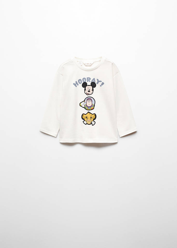Straight design. Mickey Mouse. Buzz Lightyear. Lion King print. Round neck. Long sleeves. Licenses