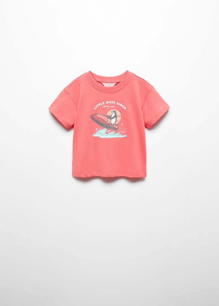 Straight design. Print. Penguin print. Embroidered detail. Round neck. Short sleeves