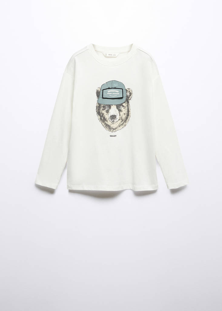 Print with animal design. Animated design. Round neck. Long sleeves
