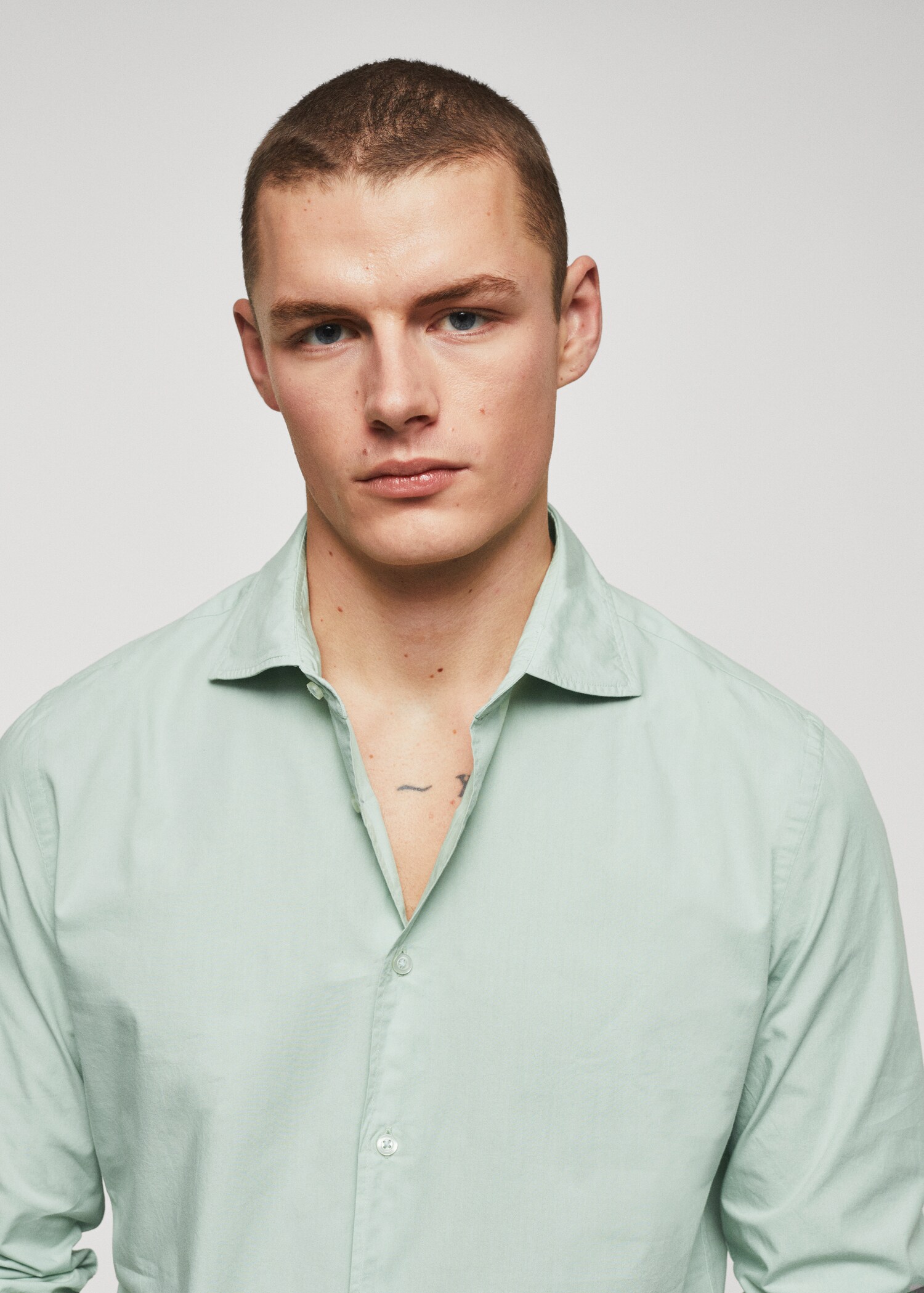 100% cotton shirtPrice historyInitial price struck through [€ 49,99 ]€ 49,99Current price [€ 38,99 ]€ 38,99-22%Select a colourAqua GreenSelect your sizeSNot available. I want it!MNot available. I want it!LNot available. I want it!XLNot available. I want it!Size guideNotify meDescription100% Cotton. Slim fit. Light fabric. Classic collar. Long sleeve. Button fastening on the front section.See detailsSize guideShare