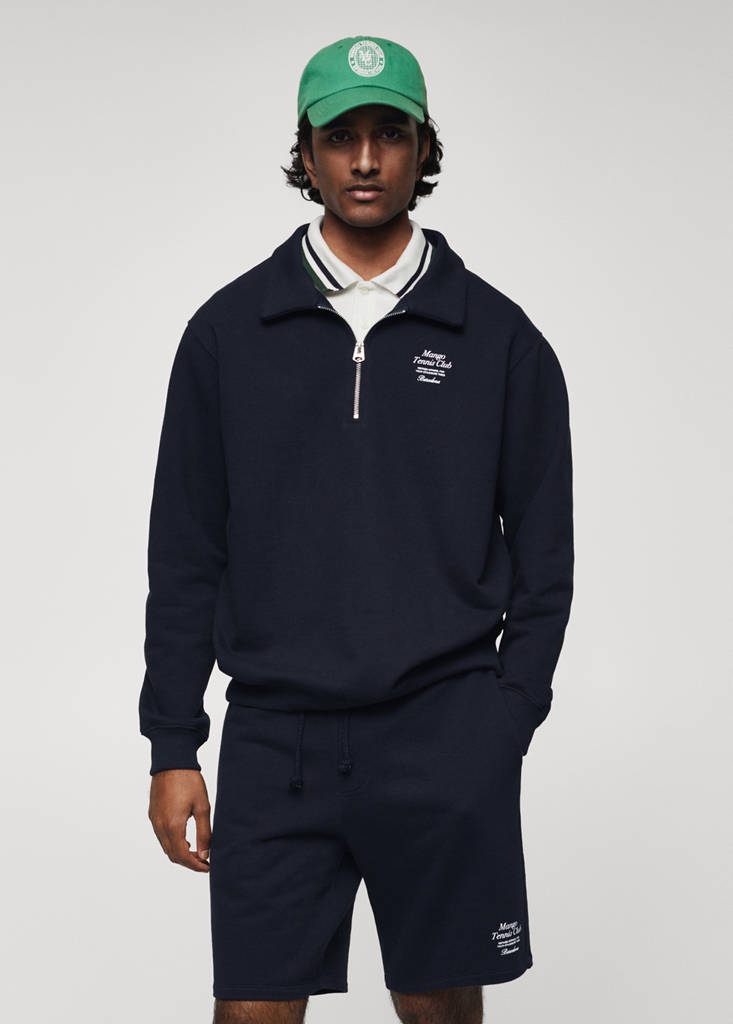 100% Cotton. Regular fit. Polo shirt with buttonless collar. Zip fastening. Embroidered message on the chest. Long sleeve with elastic cuffs. Hem with elastic band. The model is 190 cm tall and is wearing a size M. Mango Tennis Club Collection