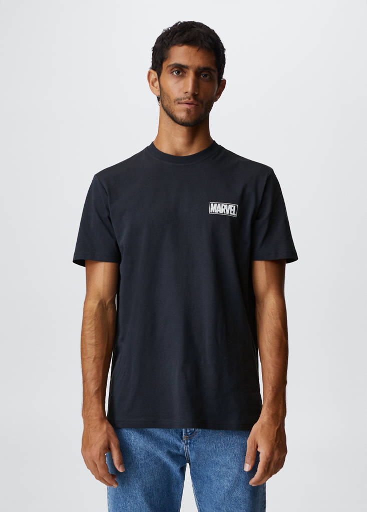 Regular fit. Marvel design. Cotton-blend fabric. Rounded neck. Short sleeve. The model is 180 cm and is wearing a size M