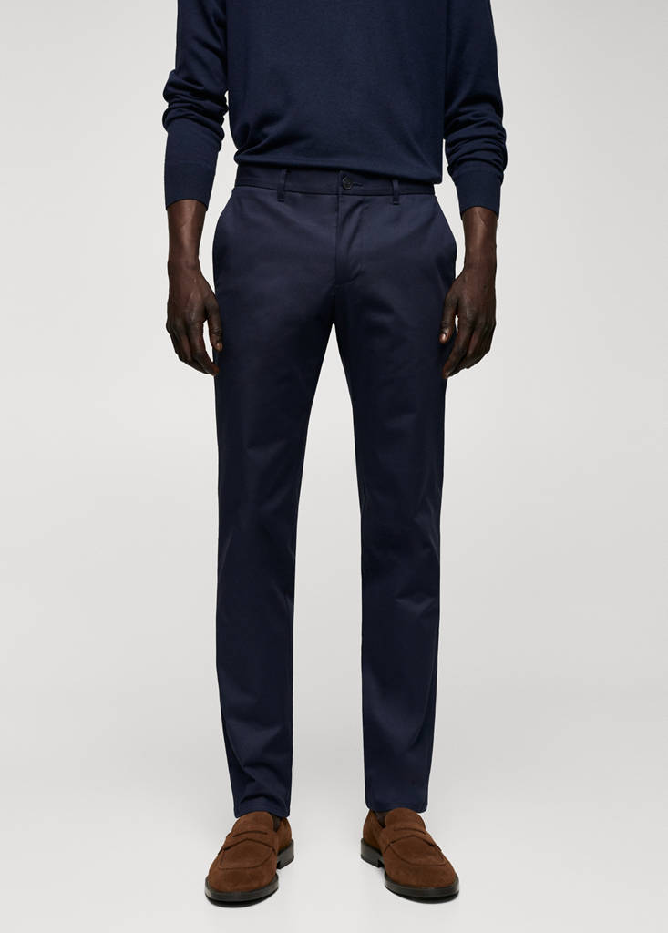 Skinny chino trousersPrice historyInitial price struck through [€ 49,99 ]€ 49,99Current price [€ 38,99 ]€ 38,99-22%Select a colourNavyThe model is wearing size 42 and is 188cm tall.Select your size36Not available. I want it!38Not available. I want it!40Not available. I want it!42Not available. I want it!44Not available. I want it!46Not available. I want it!DimensionsNotify meSkinny fit. Chinos style. Belt loops. Two side pockets. Two welt pockets at the back. Zip and button fastening. Basics Collection. Mid-rise. Medium. Standard designDetails, composition and careStore availability