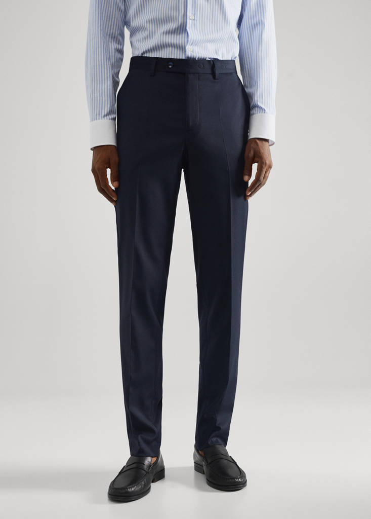 Slim fit. Medium waist. Crop style. Loops. Two front pockets. Coin pocket. Two welt pockets with button on the back. Concealed button, hook and zip fastening. The model is 187 cm tall and is wearing a size 42. Tailoring collection
