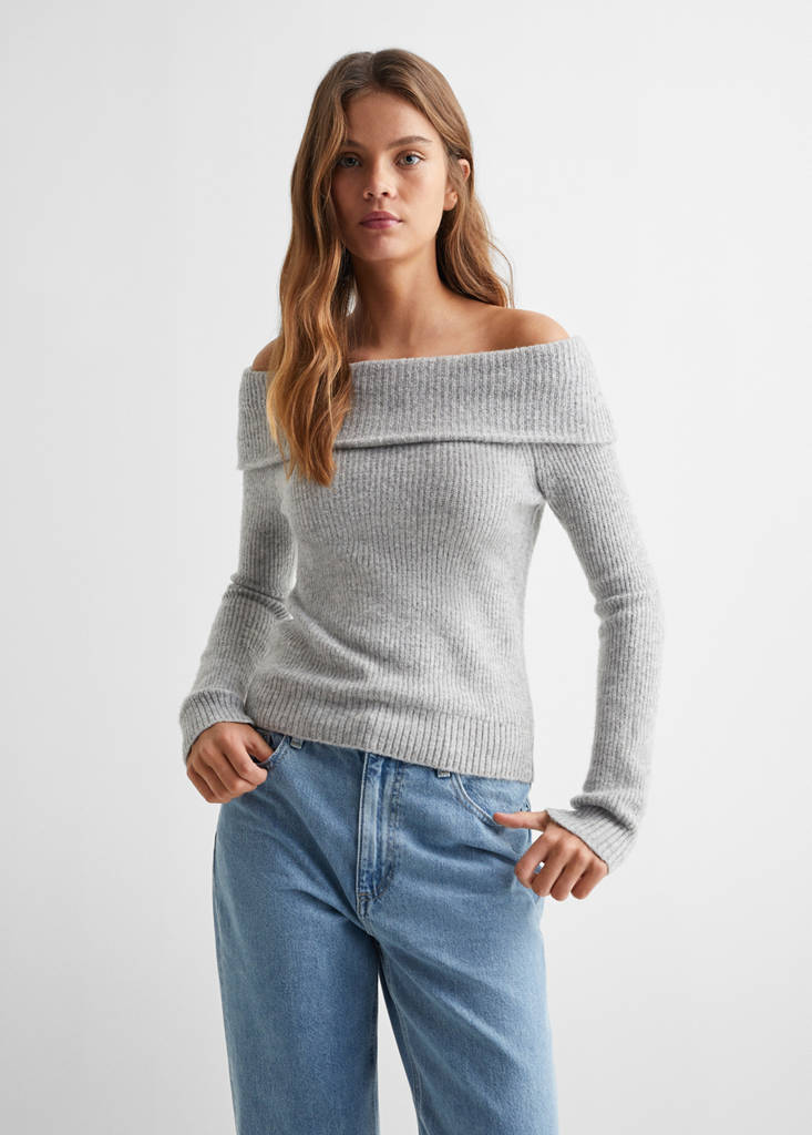 Off-the-shoulder knitted sweater