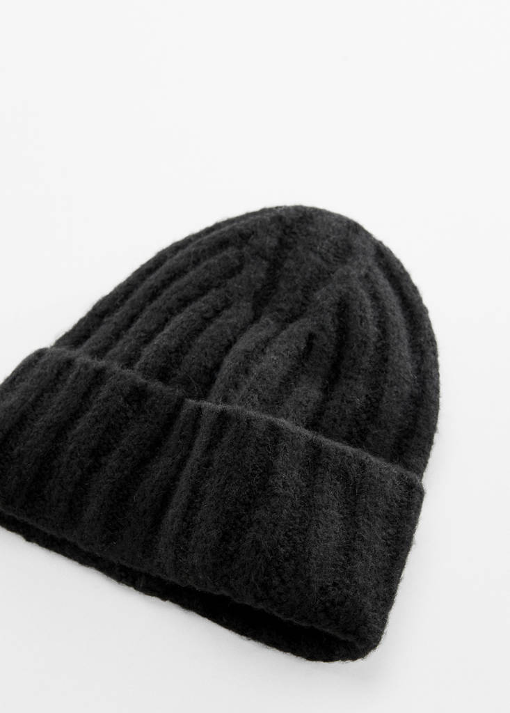 Ribbed beaniePrice historyInitial price struck through [€ 15,99 ]€ 15,99Current price [€ 10,99 ]€ 10,99-31%Select a colourBlackSelect your sizeOne sizeLast few items!AddWool mix fabric. Cable knit design. No FasteningWool mix fabric, cable knit design, unclosed.Details, composition and careStore availability