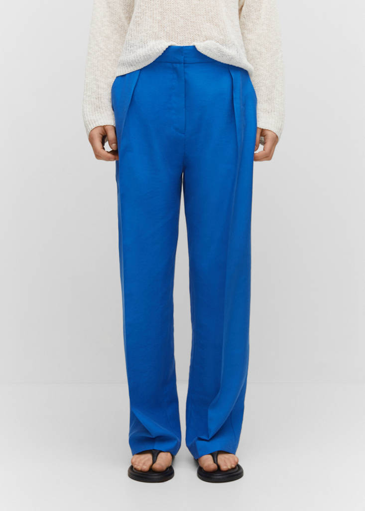 Straight-fit pleated trousersPrice historyInitial price struck through [€ 49,99 ]€ 49,99Current price [€ 33,99 ]€ 33,99-32%Select a colourInk BlueSelect your size32Not available. I want it!34Not available. I want it!36Not available. I want it!38Not available. I want it!40Not available. I want it!42Not available. I want it!44Not available. I want it!46Not available. I want it!DimensionsNotify meFlowy fabric. Straight design. Long design. Concealed button, hook and zip fastening. Two side pockets. Darts on the front. Pleated detail at frontDetails, composition and careStore availability