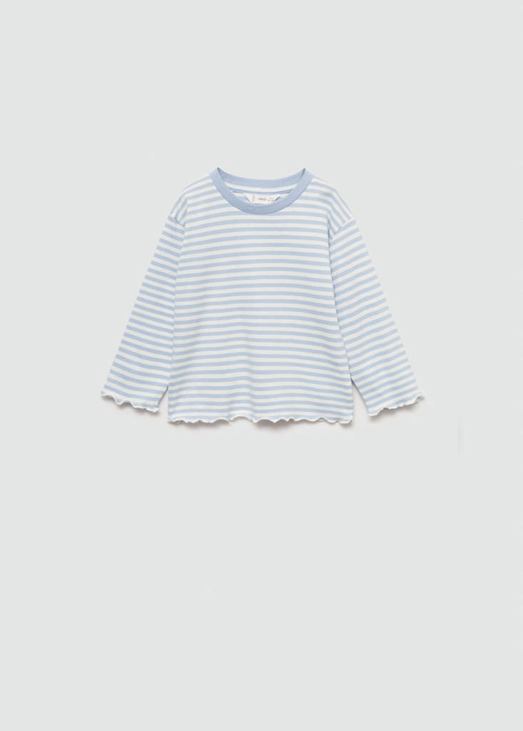 Striped cotton T-shirtPrice historyInitial price struck through [€ 7,99 ]€ 7,99Second price struck through [€ 5,99 ]€ 5,99Current price [€ 1,99 ]€ 1,99-75%Select a colourSky BlueSelect your size9-12 months (80cm)Not available. I want it!12-18 months (86cm)Not available. I want it!18-24 months (92cm)Not available. I want it!2-3 years (98cm)Not available. I want it!3-4 years (104cm)Not available. I want it!4-5 years (110cm)Not available. I want it!5-6 years (116cm)Not available. I want it!DimensionsNotify meStraight design. Round neck. Long sleeves. Wavy bass. Striped designDetails, composition and careStore availabilityItem qualitiesRecycled cottonAt least 20%This fibre is obtained from pre- and post-consumer textile waste that is transformed into new fabrics.
