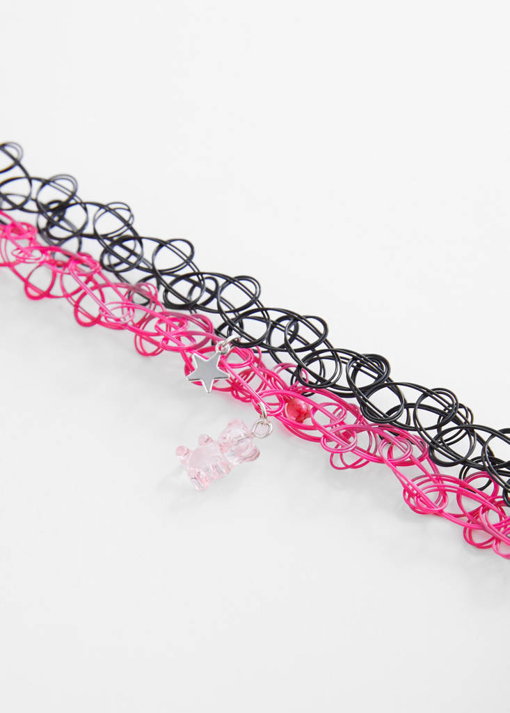 2 chokers packPrice historyInitial price struck through [€ 6,99 ]€ 6,99Current price [€ 4,99 ]€ 4,99-29%Select a colourPinkSelect your sizeOne sizeNot available. I want it!Notify mePack of 2. Choker style. Decorative pendantsDetails, composition and careStore availability