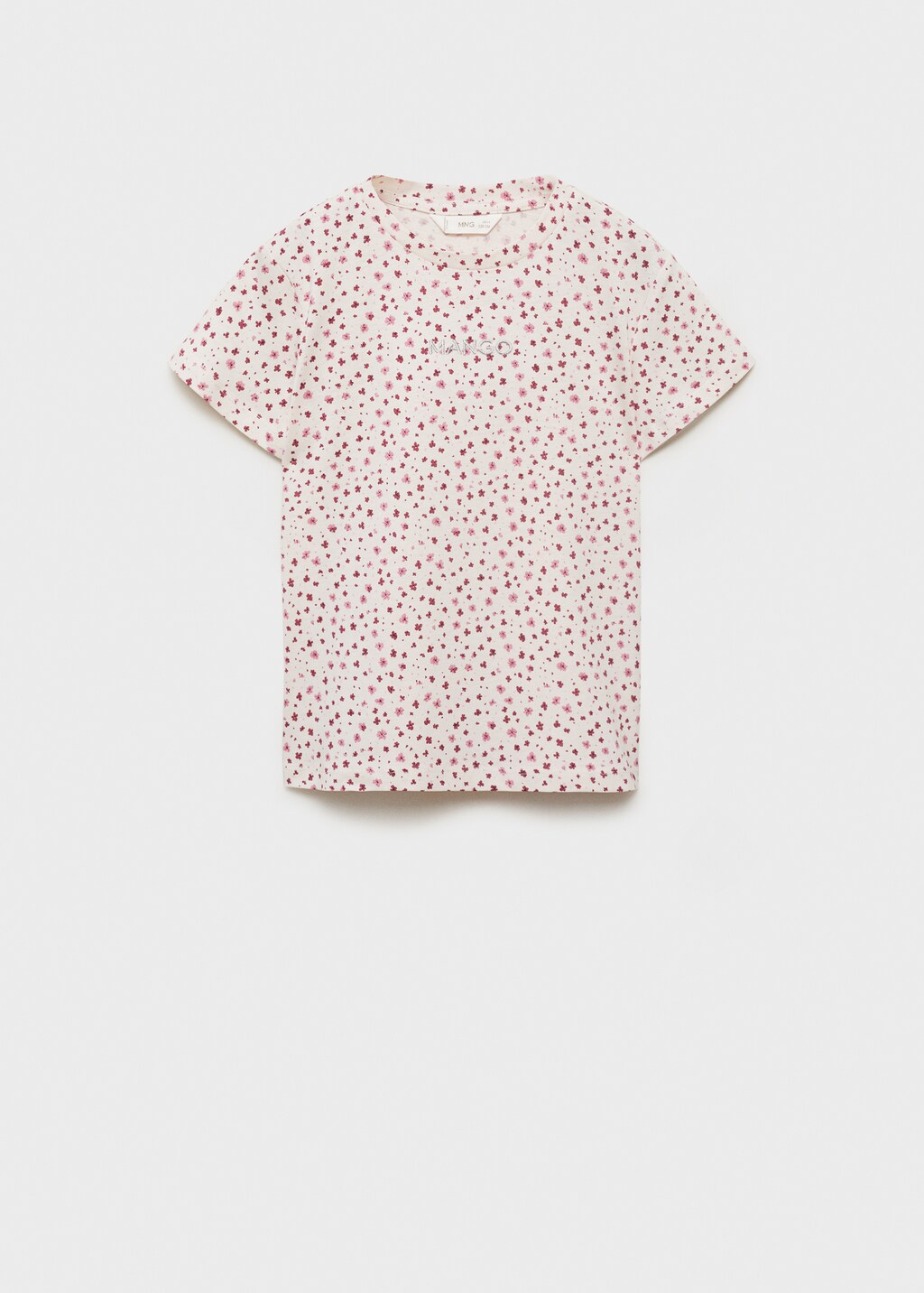 100% cotton fabric. Straight design. Floral-print design. Round neck. Short sleeves. Metallic thread detail. Mango logo embroidered on the chest.