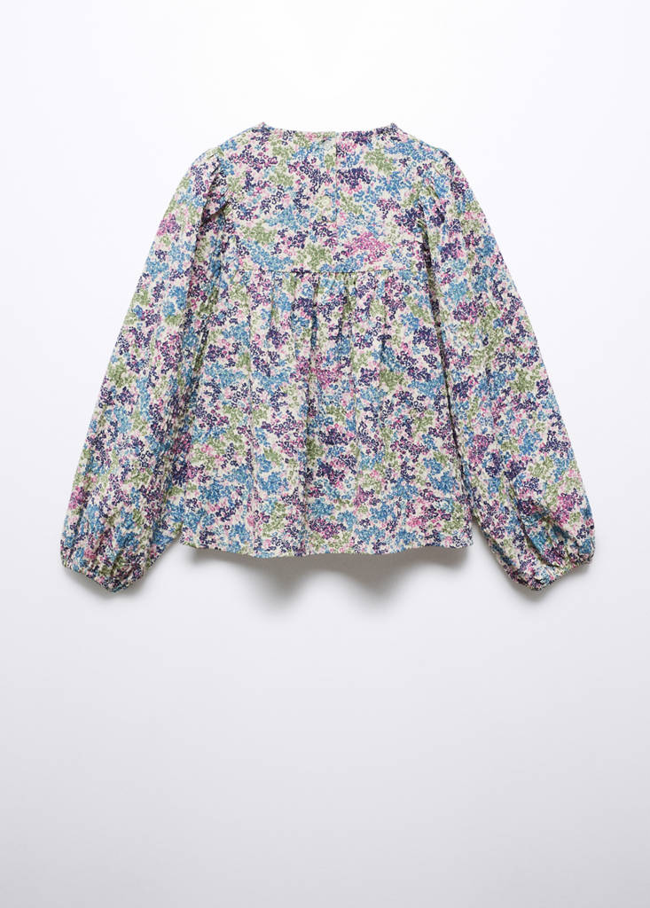 Polyester fabric. Print. Gathered detail. Round neck. Long sleeves. Button fastening on the back section