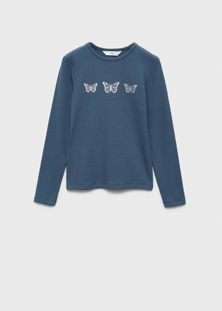 100% Cotton. Ribbed design. Printed design. Butterfly print. Round neck. Long sleeves