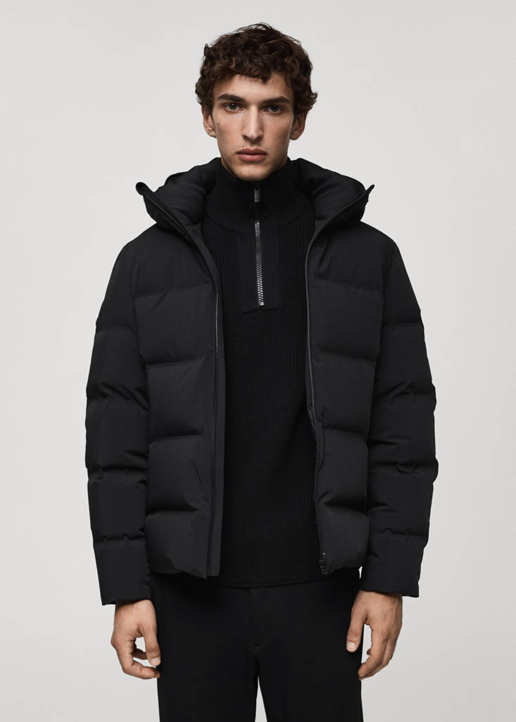 Performance Collection. The colour black is exclusively online. Comfort Stretch: Stretch fabric for added comfort. Non-crease. Quilted design. Drawstring hood. Long sleeves. Two front pockets with heat-sealed finish. Technical features such as double cuffs, adjustable hood and hem and water-repellent front fastener designed to keep out the rain and the wind. Front closure with heat-sealed zip. Hem with adjustable interior drawstring. 80/20 down and feather filling. Thermoregulating: This fabric offers optimal breathability to keep you at a stable temperature. Waterproof: This durable finish prevents water from penetrating through the fabric, providing the best possible protection against the rain. Windproof: This durable material offers protection against the wind for greater comfort in outdoor lifestyle. Comfort: Horizontal and vertical stretch fabric for added comfort
