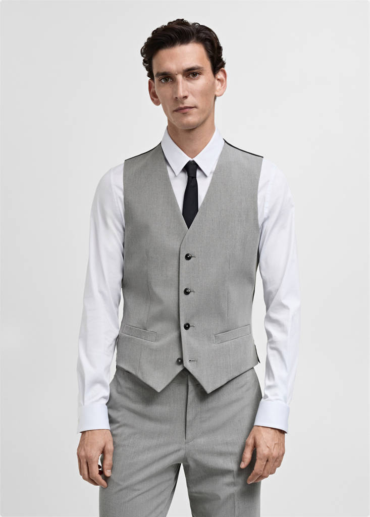 Super slim fit. Comfort Stretch: Stretch fabric for added comfort. V-neck. Front closure. Two front welt pockets. Adjustable buckle on the back. Sleeveless. Interior pocket. Stretch fabric providing maximum comfort and freedom of movement. Front closure with buttons. Inner lining. Buckle adjustment at the back. Inner lining. Tailoring collection. Comfort: Horizontal and vertical stretch fabric for added comfort. Two front welt pockets