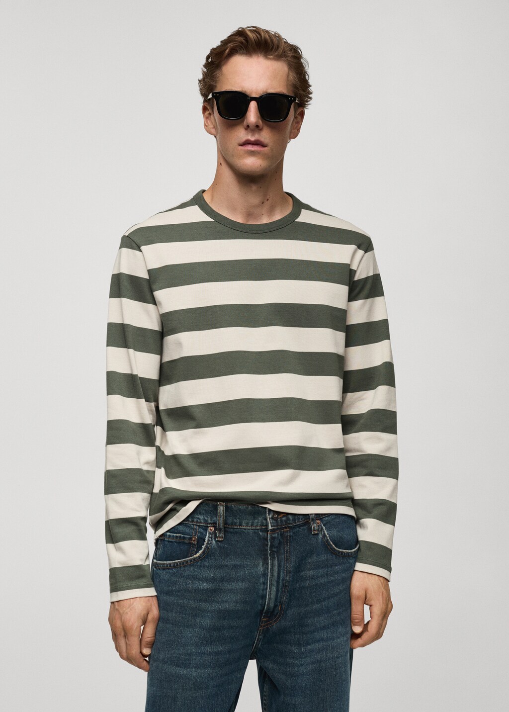 Striped long sleeves t-shirtPrice historyInitial price struck through [€ 29,99 ]€ 29,99Second price struck through [€ 22,99 ]€ 22,99Current price [€ 19,99 ]€ 19,99-33%Select a colourForest GreenSelect your sizeXSSMLXLXXLSize guideAddDescriptionRegular fit. Horizontal stripe print. Round neck with ribbed finish. Long sleeve. Straight hem. 100% cotton fabric.See detailsShare