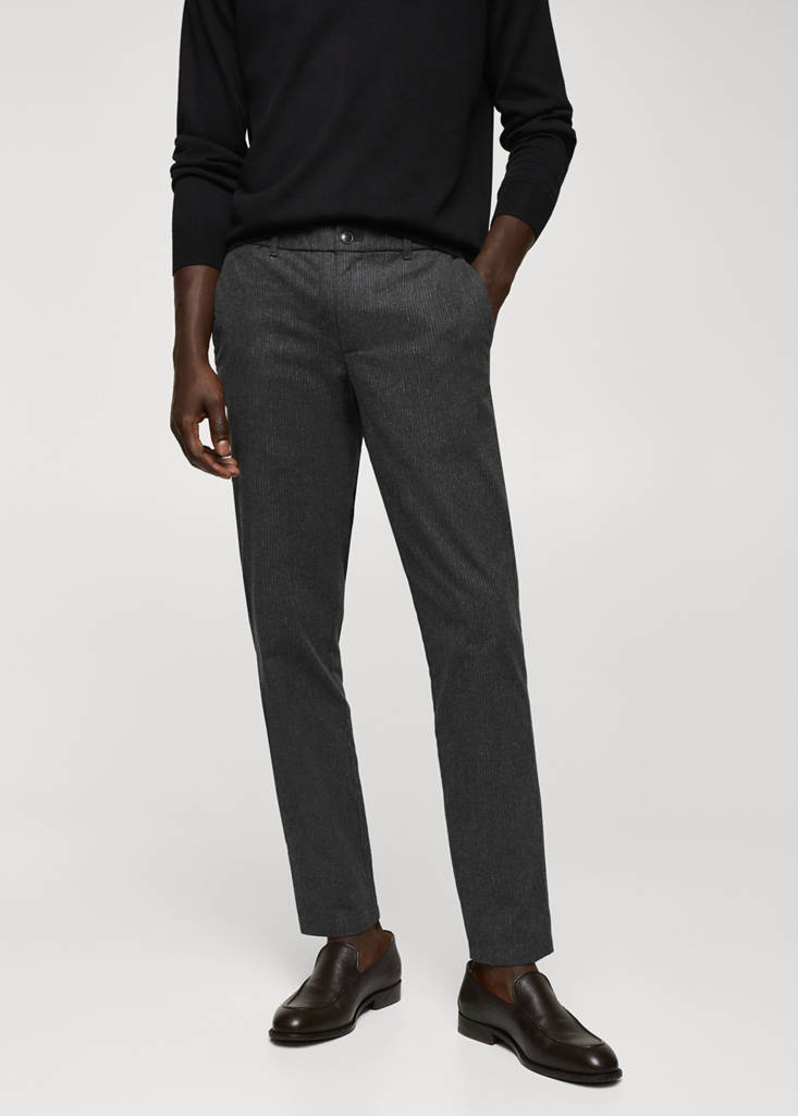 Slim fit. Cotton blend fabric. Tartan print. Double button and zip closure. Belt loops. Elastic gathering at the back of the waistband. Two front pockets. Coin pocket at hip height. Two welt pockets with button at the back
