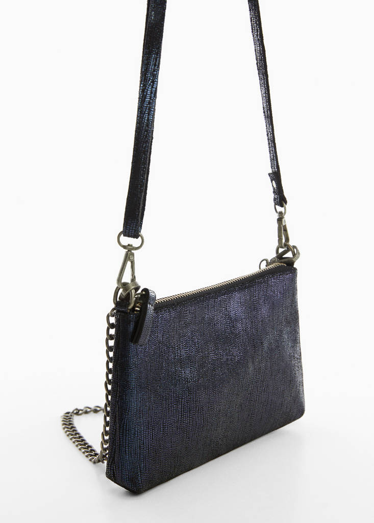 100% bovine leather. Short handle. Long strap. Chain strap. Small size. Concealed chain