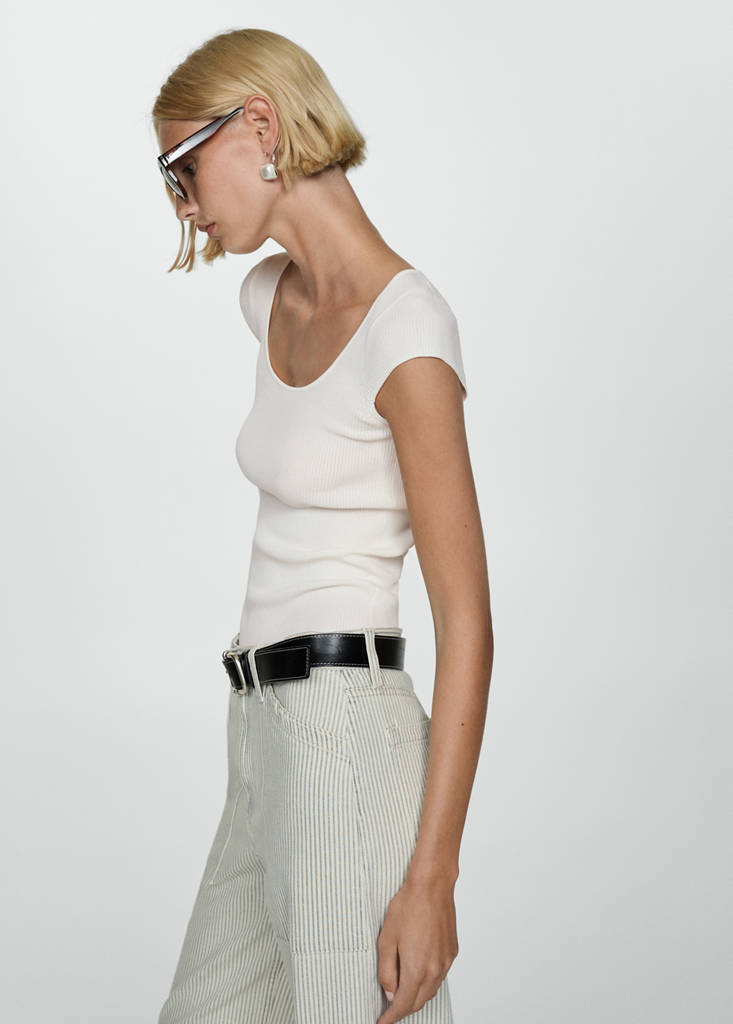 Fine knit fabric. Cable knit fabric. Straight design. Low neckline. Short sleeves. Available Plus