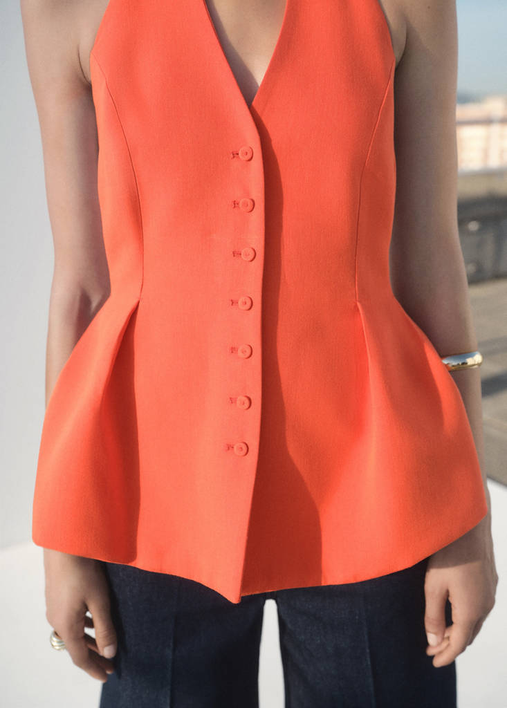 This waistcoat features a peplum cut design and a halter neck. Pair it with its matching straight-fit trousers for a total look