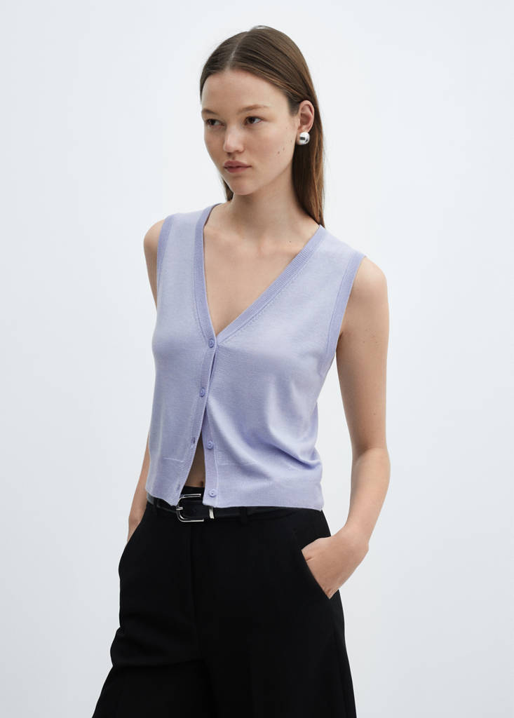 Knitted gilet with buttonsPrice historyInitial price struck through [€ 22,99 ]€ 22,99Current price [€ 17,99 ]€ 17,99-22%Select a colourSky BlueThe model is wearing size S and is 177cm tall.Select your sizeXXSNot available. I want it!XSNot available. I want it!SNot available. I want it!MNot available. I want it!LNot available. I want it!XLNot available. I want it!XXLNot available. I want it!Notify meFine knit fabric. Straight design. V-neck. Sleeveless. Basics Collection. Front closure with buttonsDetails, composition and careStore availability