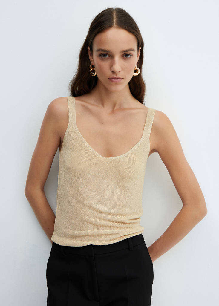 Lurex knitted topPrice historyInitial price struck through [€ 22,99 ]€ 22,99Current price [€ 15,99 ]€ 15,99-30%Select a colourGoldSelect your sizeXXSNot available. I want it!XSNot available. I want it!SNot available. I want it!MNot available. I want it!LNot available. I want it!XLNot available. I want it!XXLNot available. I want it!Notify meLurex fabric. Fine knit fabric. V-neck. Wide straps. Party, ceremony and communion collection. Straight design. Standard design. Thin strapsDetails, composition and careStore availability