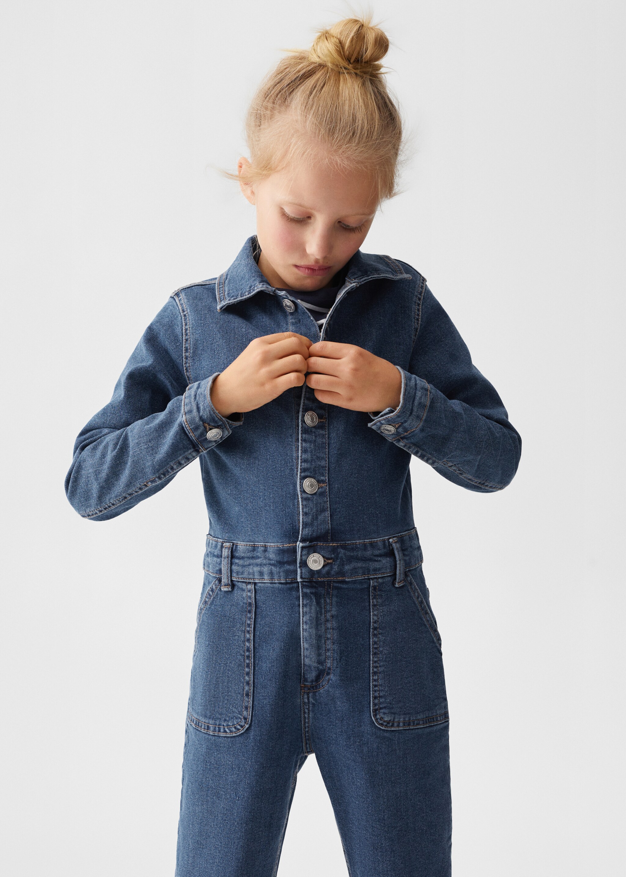 Girl's jumpsuits and dresses are the perfect garments for any occasion, as they can be used both for everyday wear and to dress her up for any informal event. If you are looking for the perfect outfit for your daughter for a special celebration, at Mango Outlet we have an endless number of cheap girls dresses where you can find just what you are looking for. We have both long and short girls dresses, in a wide variety of colors and prints so you can choose the option you like the most. If what you are looking for is a garment to wear for your daughter and that will withstand the activity of her day to day life, we recommend you to choose our girl's overalls. You can choose from both summer and winter garments in a wide variety of models, which you can combine both in urban outfits and in looks more focused on celebrations. We also have a wide collection of girl's jumpsuits for ceremonies at affordable prices with long length, with motifs and floral prints and very youthful. If you are looking for a girl's jumpsuit for everyday wear, our denim dungarees, which you can find in different colors and shapes, are the best option for you. At Mango Outlet we are experts in clothing for girls of all kinds, so we offer you the guarantee that our dresses and jumpsuits for girls are the best option to find the perfect outfit for the youngest of the house.