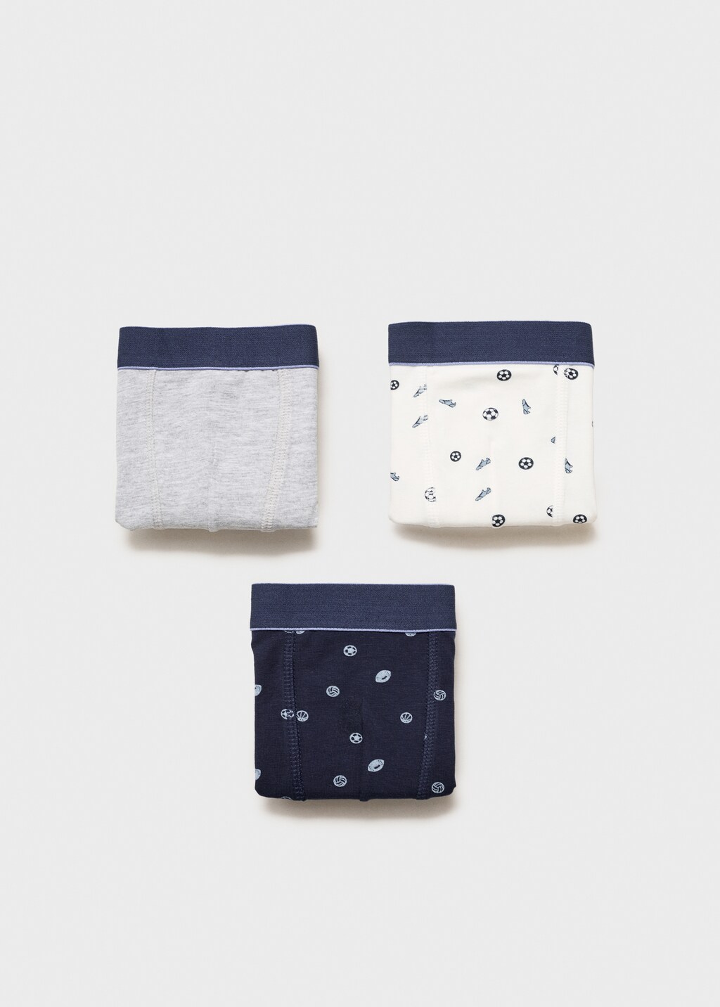 Pack of 3. Fabric with cotton. Straight design. Short design. Elastic waistband. Printed design.