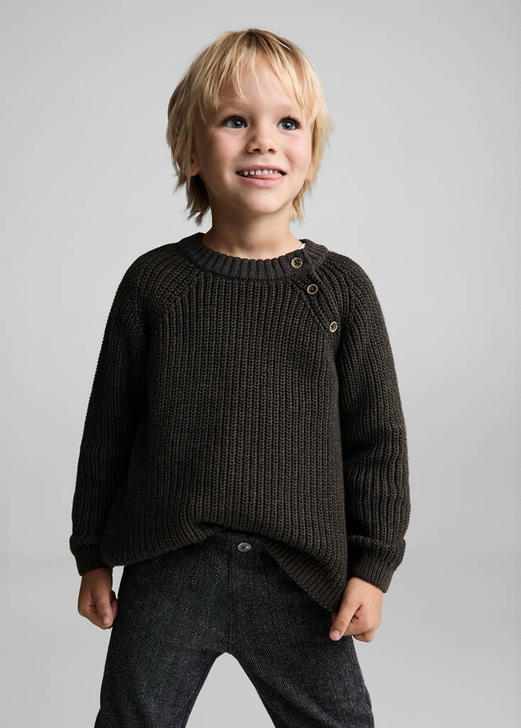 Straight design. Elastic waistband. Two side pockets. Decorative button. No closure