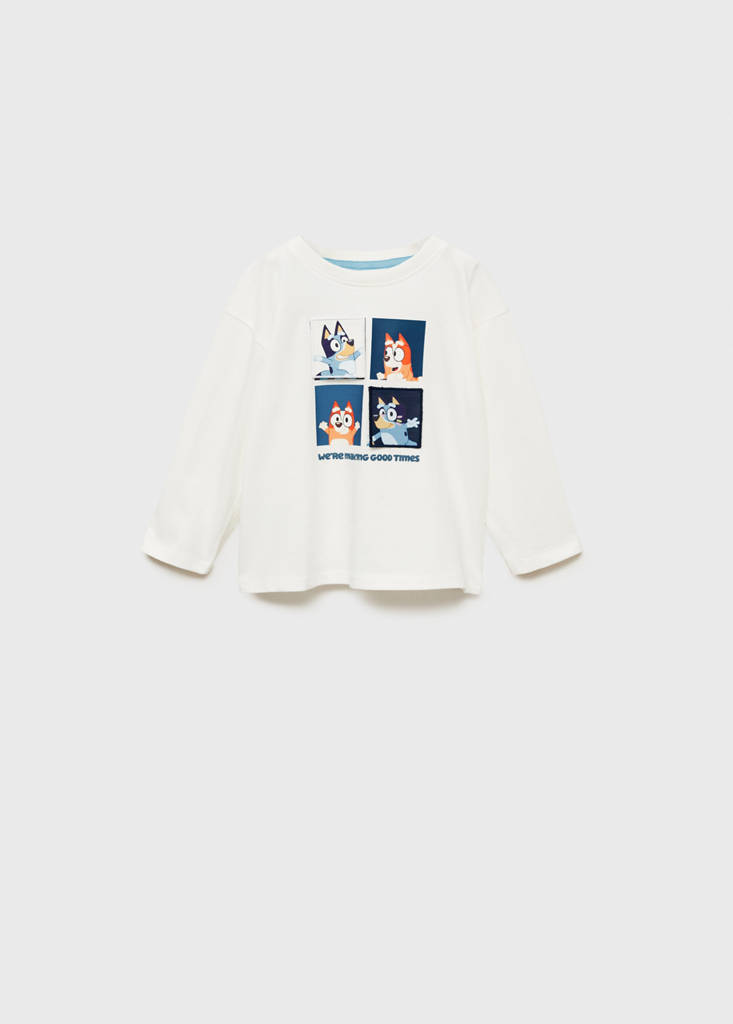 100% Cotton. Straight design. Bluey Print. Round neck. No closure. Kids license