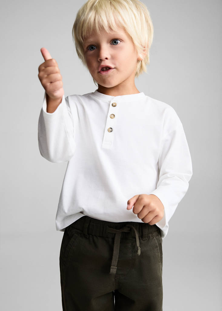 Fabric with cotton. Straight design. Elastic waistband. Adjustable drawstring. Jeans with tie closure. Long design. Adjustable drawstring closure