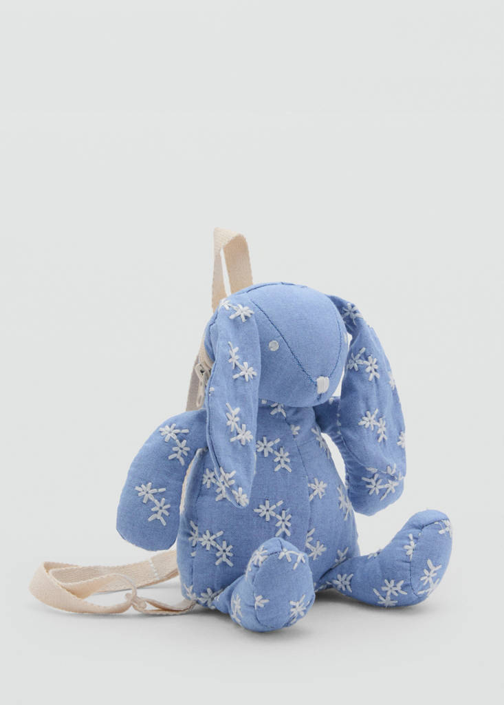 100% Cotton. Little rabbit design. Floral embroidery. Two adjustable handles. Top handle. Zipper closure