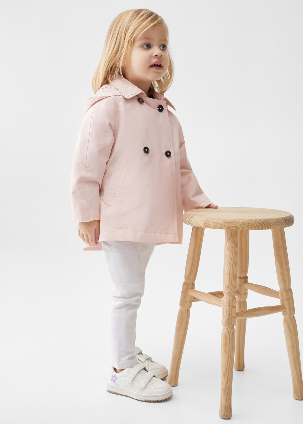 Hooded trenchInitial price struck through [US$ 59.99 ]US$ 59.99Current price [US$ 47.99 ]US$ 47.99-20%Select a colourPinkSelect your size9-12 (31in)Not available. I want it!12-18 (33in)Not available. I want it!18-24 (36in)Not available. I want it!2-3 years (39in)Not available. I want it!3-4 years (41in)Not available. I want it!4-5 years (43in)Not available. I want it!Size guideNotify meDescriptionFabric with cotton. Evasé design. Hood. Long sleeve. Button up. Two side pockets. Inner lining.See detailsSize guideShare