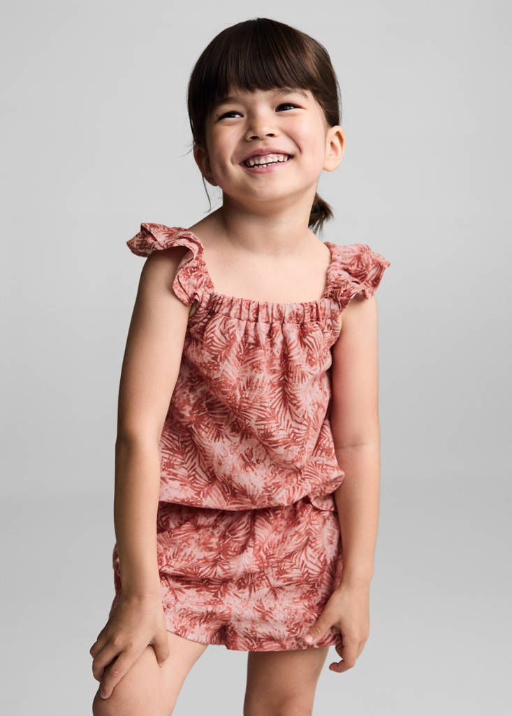 100% cotton. Leaf print. Straight design. Short design. Textured. Elastic waistband. No closure