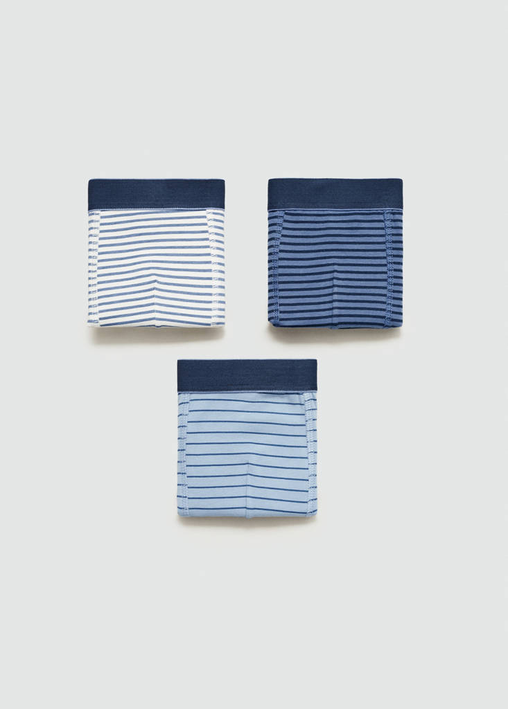 Pack of 3. Fabric with cotton. Straight design. Short design. Elastic waistband. Striped design