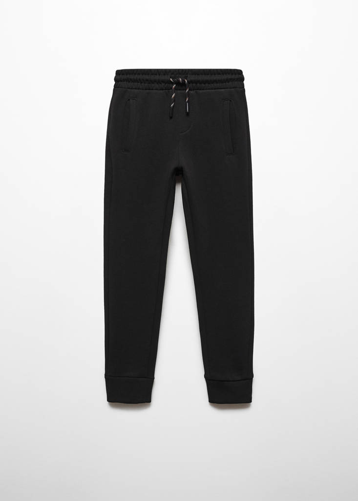 100% cotton. Basics Collection. Long design. Jogger design. Straight design. Tracksuit. Elastic waistband. Elastic band. Two pockets with flaps. Drawstring closure. Elastic waist with drawstring. Two side pockets. Felt fabric